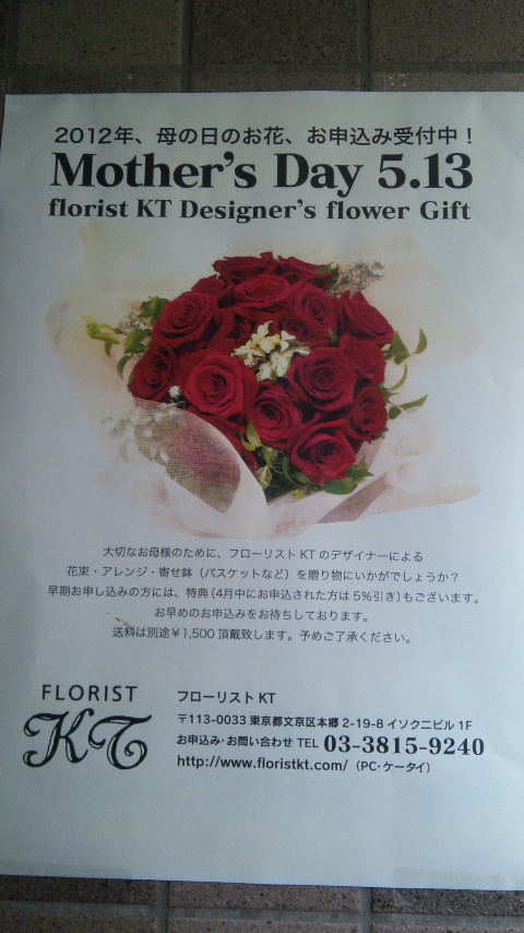 あっという間に5月ですね。連休に母の日のプレゼントの花束やアレンジメントを考えながら春メニューのKTのお食事はいかがですか?