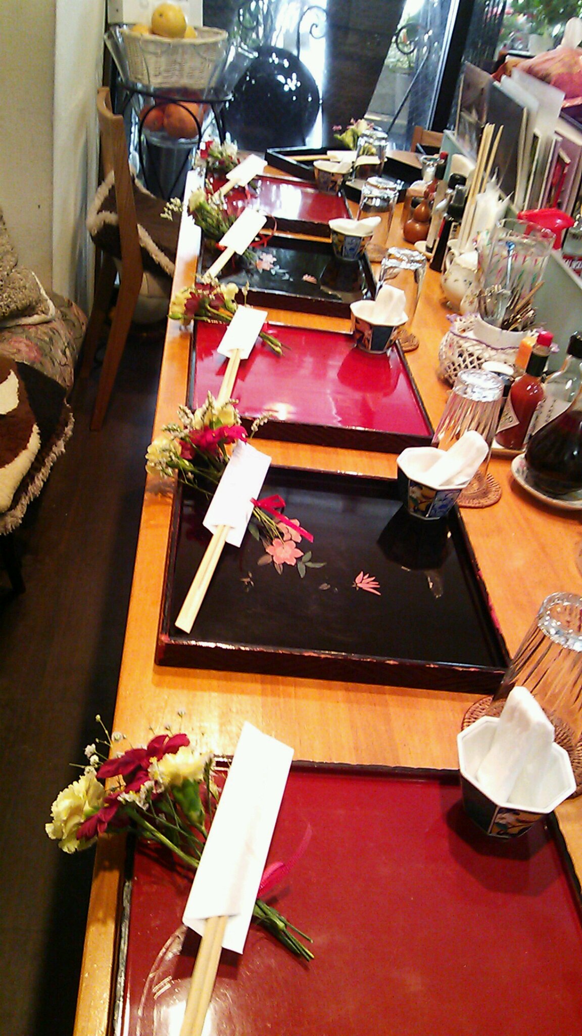 飲食のお客さまには箸置き代わりのお花をお持ち帰り頂いています。